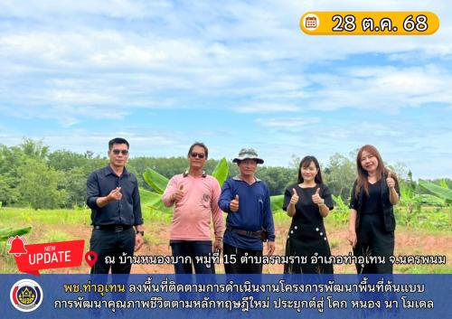 📢 พช.ท่าอุเทน ลงพื้นที่ติดตามการดำเนินงานโครงการพัฒนาพื้นที่ต้นแบบการพัฒนาคุณภาพชีวิตตามหลักทฤษฎีใหม่ ประยุกต์สู่ "โคก หนอง นา โมเดล"