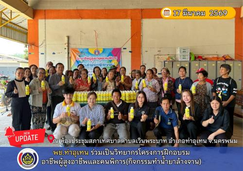 📢 พช.ท่าอุเทน ร่วมเป็นวิทยากรโครงการฝึกอบรมอาชีพผู้สูงอาชีพและคนพิการ(กิจกรรมทำน้ำยาล้างจาน)