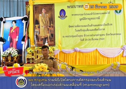 📢 พช.ท่าอุเทน ร่วมพิธีเปิดโครงการคัดกรองมะเร็งเต้านม โดยเครื่องเอกเรย์เต้านมเคลื่อนที่ (mammogram)